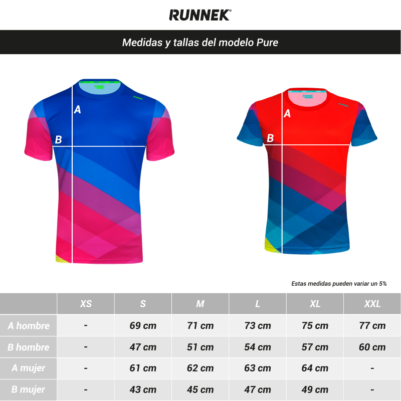 ¡Saca todo tu potencial! La camiseta de manga corta Runnek Pure ha sido diseñada por completo con tecnología de sublimación para obtener una geometría de 18 colores muy llamativa cuando haces deporte.
